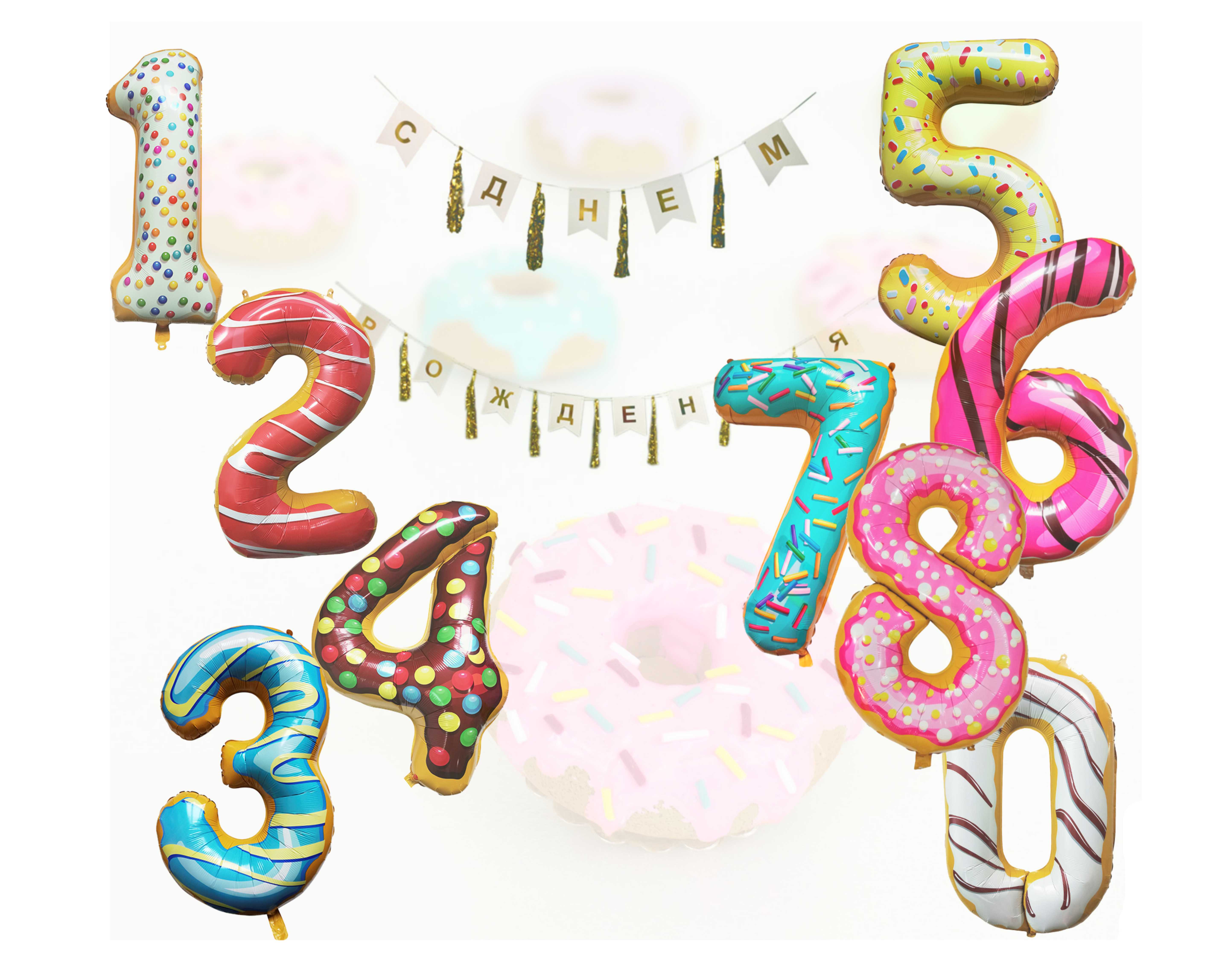 Яркие и аппетитные Цифры-пончики 40"/102см
