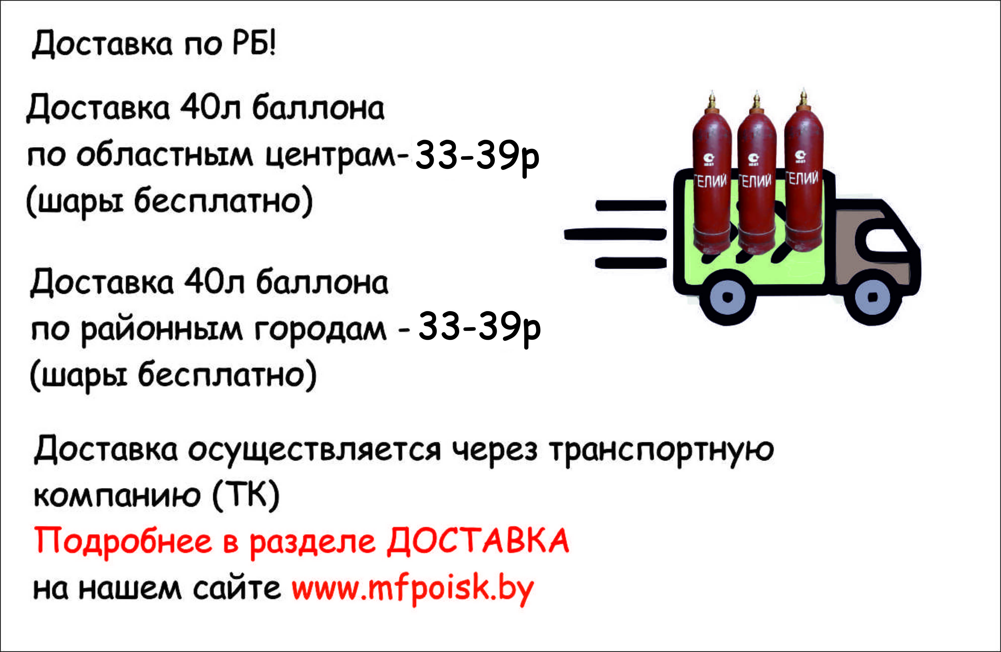 Внимание, теперь мы ДОСТАВЛЯЕМ ГЕЛИЙ в баллонах не только по Минску, но и по всей РБ!