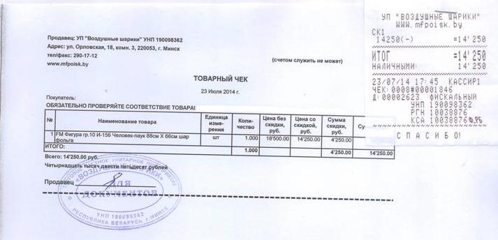 Каждая ваша покупка сопровождается необходимыми документами: кассовым и товарным чеками.